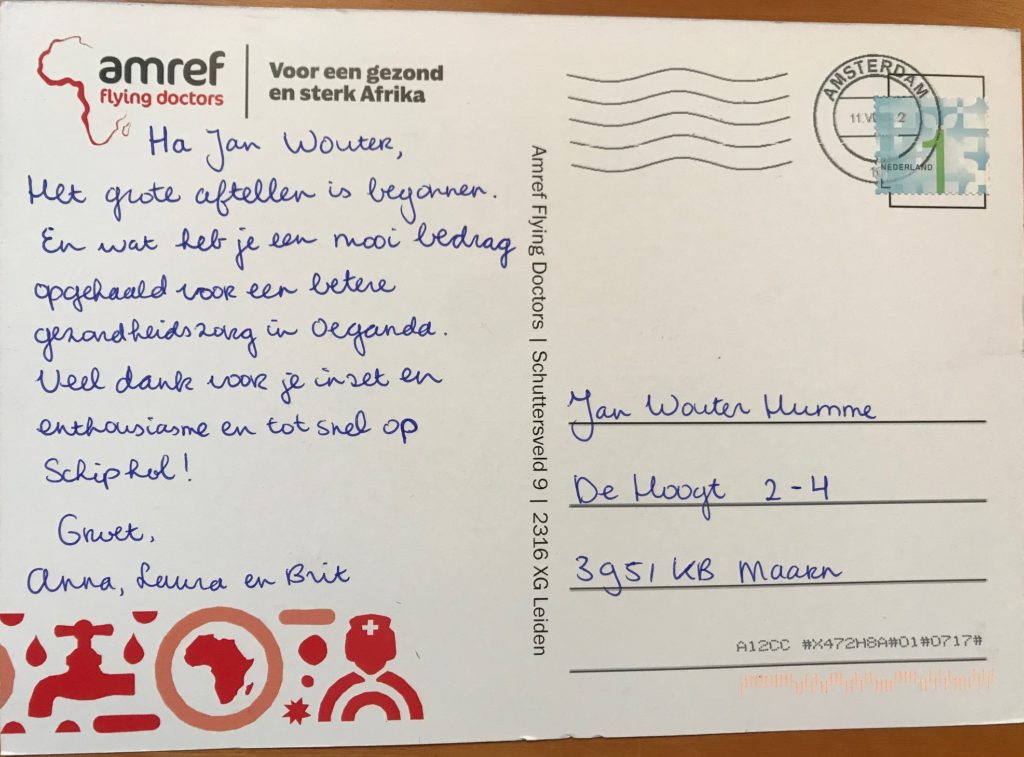 Gisteren lag er vanuit de organisatie een leuke kaart op de mat met een persoonlijke boodschap. Hartstikke leuk!