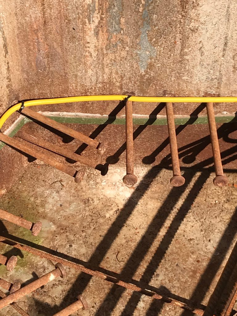 Na het aanbrengen van de ankers is de wapening aangebracht en dit bleek geen sinecure. De wapeningstaven hebben een diameter van 20 mm. Staaf voor staaf worden deze aangebracht.